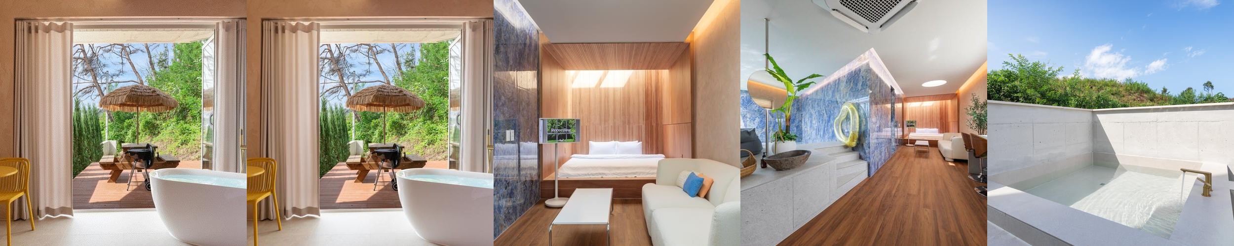 숙소 내 인테리어는 감성적이며, 세련된 디자인으로 꾸며져 있어 시각적으로도 만족감을 줍니다. 각종 요청사항에 대해 사장님이 친절하게 응대해 주어 편안한 분위기를 조성합니다. 야외 자쿠지와 같은 부대시설도 마련되어 있어 특별한 경험을 제공합니다.
