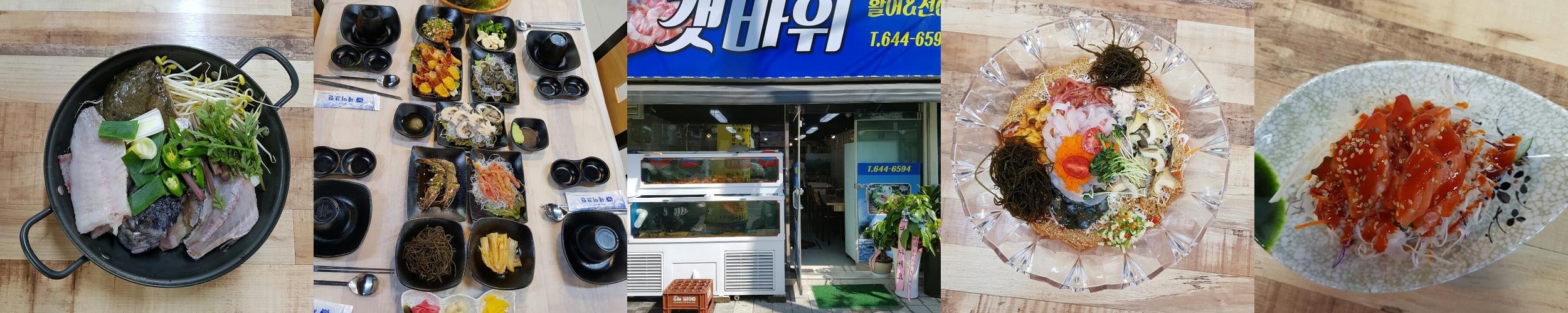 고객들은 신선한 재료로 만든 다양한 밑반찬을 즐길 수 있으며, 알밥과 함께 제공되는 김치는 직접 담근 것으로 보입니다. 갯바위는 백년가게로 지정된 만큼 오랜 전통을 자랑하며, 지역 주민들에게 사랑받고 있습니다. 이곳의 회는 항상 신선하고 맛있으며, 다양한 소스와 함께 즐길 수 있어 더욱 매력적입니다.