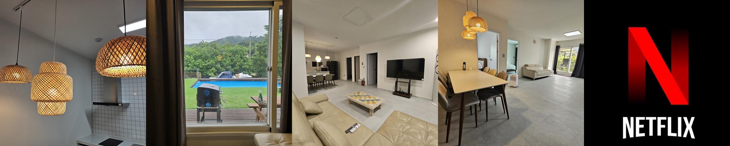 대중교통 이용 시 픽업 서비스가 제공되어 편리하게 이동할 수 있습니다. 주변은 조용하고 평화로운 분위기를 자아내어, 휴식과 여유를 즐기기에 적합합니다. 또한, 숙소 내에서는 넷플릭스와 같은 다양한 엔터테인먼트 시설이 마련되어 있어, 가족과 함께 편안한 시간을 보낼 수 있습니다.